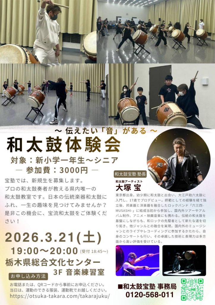 【大塚宝の和太鼓体験教室】